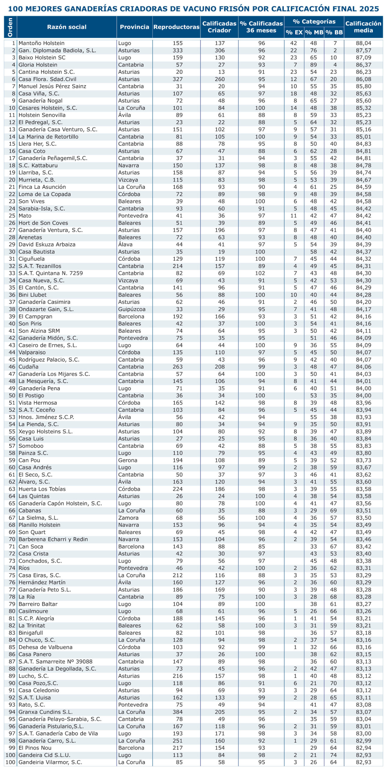 Mellores ganderías criadoras por calificación final 2025M 29 Abril, 2026 Tags2026 FacebookXPinterestWhatsApp